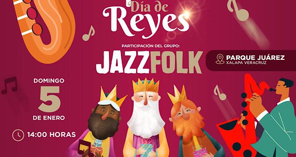 Este domingo 05 de enero en punto de las 14:00 horas, en el Parque Juárez se llevará a cabo un concierto didáctico especial de día de reyes, con la participación del grupo Jazz Folk.