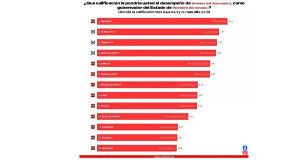 Entre los rubros evaluados están: calificación del trabajo y desempeño de las gobernadoras, seguridad pública, cercanía con la población, sistema de salud estatal, manejo de la crisis del agua, calidad y eficiencia del sistema de movilidad, obras públicas, transparencia y accesibilidad de la información.