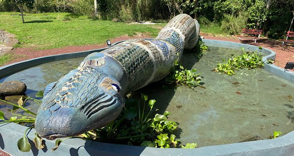 Esta escultura, creada por las talentosas artistas Rocío Sagaón (1933-2015) y Laura Navarro, fue instalada hace 17 años como parte de un conjunto de diez piezas que celebran la riqueza cultural y natural de la región.