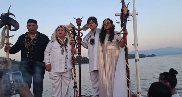 Acompañado de la recién nombrada Bruja Mayor, Reina Isabel Martínez Méndez, y del presidente nacional de la Alianza de Comunidades Indígenas, Roberto Valeriano Troncoso Queb, se realizó la Misa de Purificación en la laguna de Catemaco.