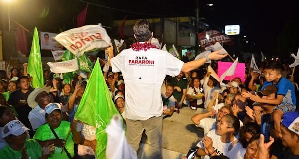 San Andrés Tuxtla: El 1 de junio no debe ganar el abstencionismo, ejerzan su derecho al voto y protagonicemos una votación histórica en San Andrés Tuxtla, expresó el candidato de la alianza Morena- Verde, Rafa Fararoni.