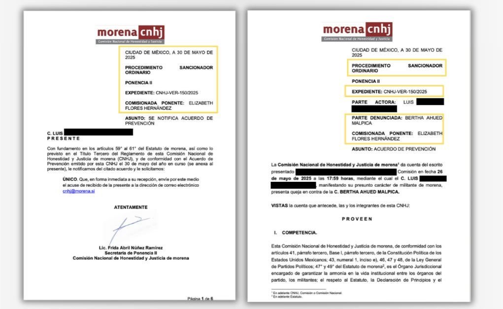 Ciudad de México: La Comisión Nacional de Honestidad y Justicia (CNHJ) de Morena notificó la apertura de un Procedimiento Sancionador Ordinario en contra de Bertha Ahued Malpica, derivado de una queja presentada por militantes del partido.