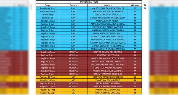 El Movimiento de Regeneración Nacional logró colocar cinco regidores, mismo número que tendrá el Partido Acción Nacional en el Cabildo de Boca del Río; mientras que Movimiento Ciudadano obtuvo dos plazas de ediles.