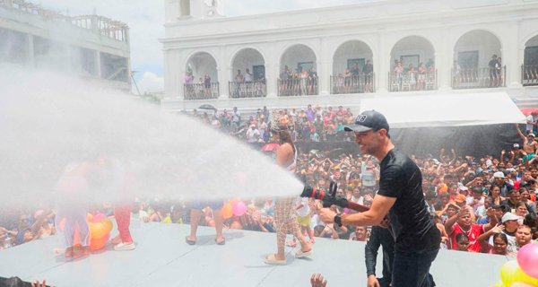 Para dar inicio, el Presidente Municipal, su esposa y su pequeña hija, activaron la primera manguera mojando a chicos y grandes.