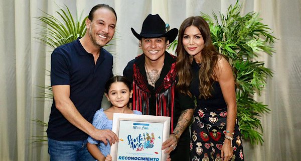 Previo a la noche estelar, el alcalde de Boca del Río, Juan Manuel Unánue Abascal junto a la presidenta del DIF Municipal; Melina Rivera de Unánue y su hija Aitana, entregaron un merecido reconocimiento a la agrupación regiomontana que puso a bailar y a cantar a boqueños y visitantes que se dieron cita en el último día de actividades.