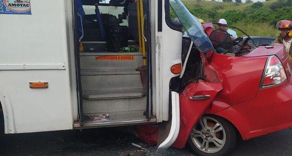 Los hechos ocurrieron alrededor de las 5:30 de la mañana a la altura de la localidad de Arbolillo, donde un autobús de la línea Sotavento invadió carril e impactó a un automóvil Chevrolet Aveo color rojo con placas YJW-499-B.