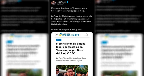 El vocero nacional del PAN, Jorge Triana Trena, a través de su cuenta de X, respondió a las declaraciones de la dirigencia estatal de Morena en Veracruz, quien anunció una «batalla legal» por la alcaldía de Boca del Río.