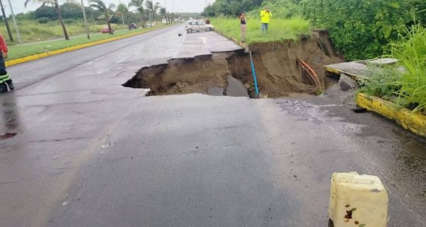 Un tramo del boulevar Riviera Veracruzana que conduce del municipio de Boca del Río a la localidad de Antón Lizardo en Alvarado fue cerrado en su totalidad debido a un enorme socavón que se registró tras las intensas lluvias de este martes 7 de octubre.