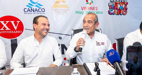 El ejecutivo acompañó al presidente de Cámara Nacional de Comercio, Servicios y Turismo (Canaco Servytur) Veracruz, José Tomás Méndez Valerio, a la presentación de los pormenores del programa que impulsa descuentos en servicios y productos.