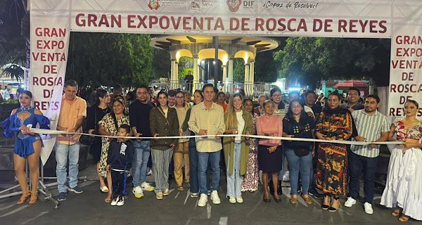 San Andrés Tuxtla: Con la finalidad de impulsar el comercio local de San Andrés Tuxtla, el Gobierno Municipal inauguró este domingo la primer Gran Expo Venta de Roscas de Reyes hechas por manos sanandrescanas.