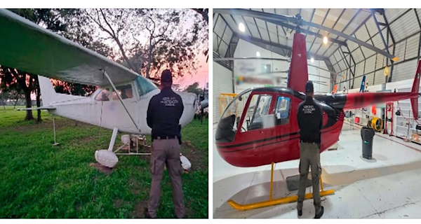 En dicho sitio quedó detenida una persona y, además, aseguraron tres armas cortas, tres cargadores, 45 cartuchos, seis aeronaves de ala rotativa, una aeronave de ala fija, un fuselaje y un vehículo.