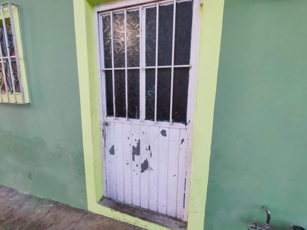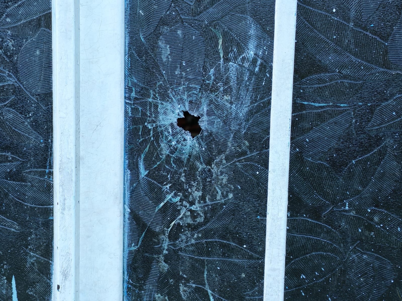 La puerta del domicilio recibió dos impactos de bala, uno en la parte baja y otro en el cristal, el resto de los disparos quedaron en un vehículo que fue retirado del lugar.