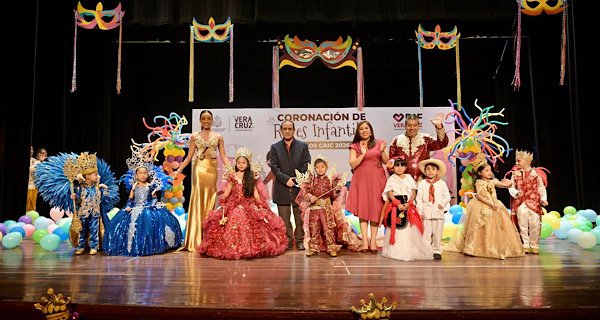 Veracruz: En un ambiente de mucha alegría y colorido, se realizó la coronación de “Romina I” y “Saúl I”, del CAIC Sixtita Bello, como soberanos del Carnavalito “Rey de Reyes” en donde participaron de manera entusiasta, niñas y niños de los 14 Centros de Asistencia Infantil Comunitarios (CAIC) del DIF Municipal de Veracruz.
