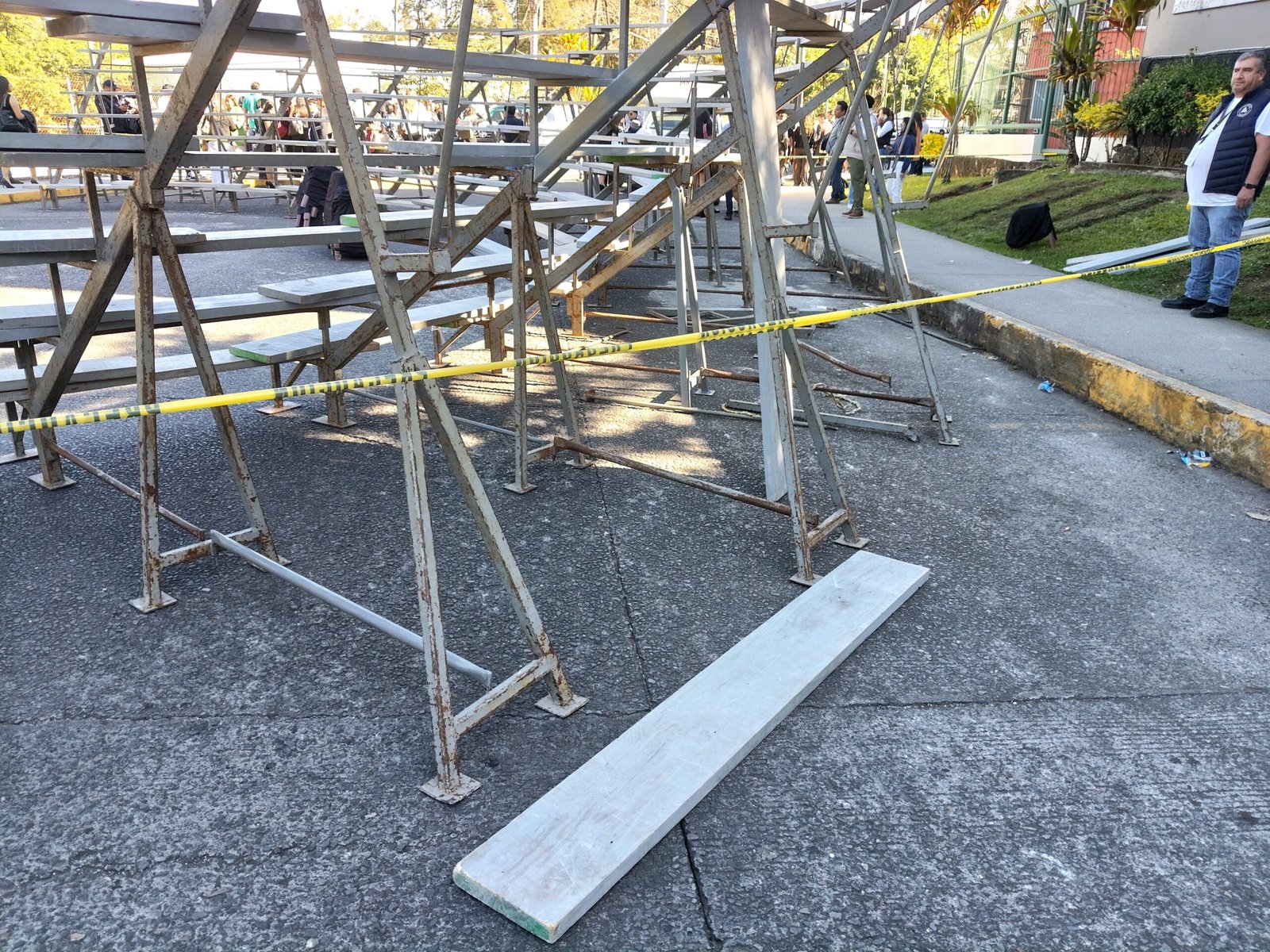 La mañana de este lunes se llevaba a cabo la fotografía oficial de los 400 egresados de la generación 2022-2026 de la facultad de Derecho, cuando se vinieron abajo las gradas.