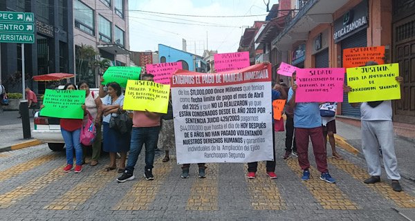 Ejidatarios de la ampliación del ejido Ranchoapan Segundo, perteneciente al municipio de San Andrés Tuxtla, protestaron cerrando el centro de la capital veracruzana, para exigir a la Secretaría de Desarrollo Agrario, Territorial y Urbano (SEDATU) el cumplimiento de un pago millonario que, aseguran, lleva años de retraso.