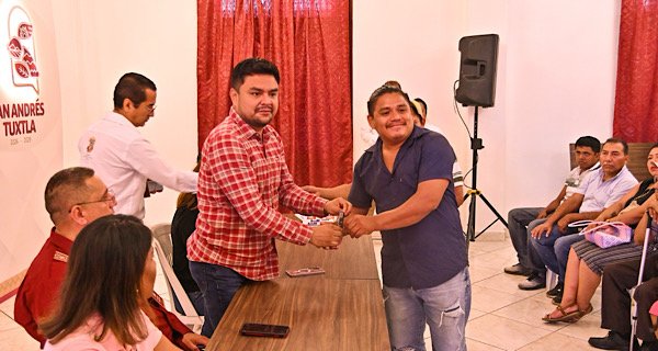 San Andrés Tuxtla: Este viernes, en Sala de Cabildos, la dirección de Gestión Urbana, a cargo del director Oscar Torres Aguirre, entregó las primeras credenciales de empadronamiento a 79 vendedores del parque Sebastián Lerdo de Tejada.