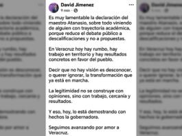 En un mensaje público, el exmandatario aseguró que ha sido “extremadamente respetuoso” del actual gobierno estatal encabezado por Rocío Nahle García, dejando en claro que no emitirá declaraciones que demeriten a quien fue electa democráticamente por millones de veracruzanos.
