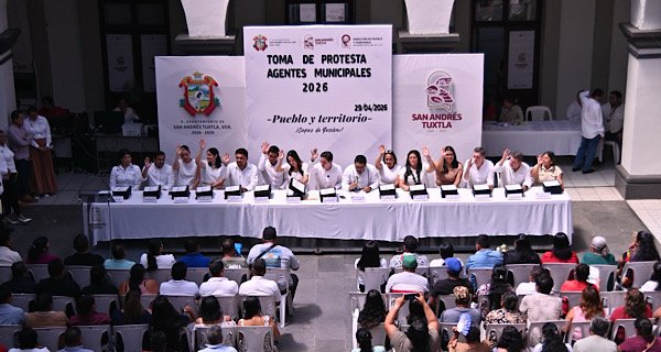 San Andrés Tuxtla: El Ayuntamiento de San Andrés Tuxtla, tomó protesta este miércoles a 117 agentes y subagentes municipales electos por las comunidades del municipio.