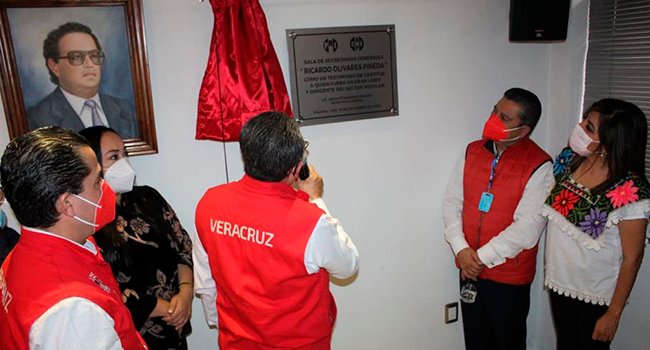 Durante el homenaje, fue develada una placa en la que queda establecido que la sala ex secretarios generales de la CNOP en Veracruz, llevará el nombre de Ricardo Olivares Pineda.