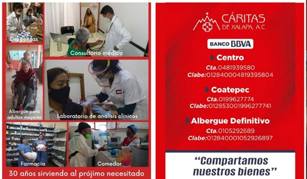 Los apoyos los recibe la asociación civil Cáritas de Xalapa. La organización informó sobre las cuentas bancarias a donde se puede depositar el donativo.